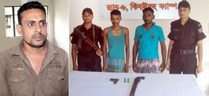 Members of Rapid Action Battalion (RAB) rescued expatriate Liton Hossain (left) after seven days of his abduction and arrested two abductors with two firearms from Kalmankhali village under Sadar upazila of Jhenidah district in the early hours of Tuesday.