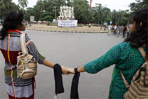 Photo: Students under the banner of \\\'General Students against Repression\\\' formed a human chain