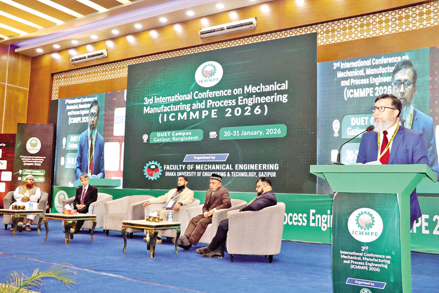 Prof Dr. Mohammad Zoynal Abedin, vice-chancellor of Dhaka University of Engineering & Technology, Gazipur, speaking at the two-day 3rd International Conference of Mechanical Manufacturing and Process Engineering (ICMMPE 2026) on the university campus on Friday.