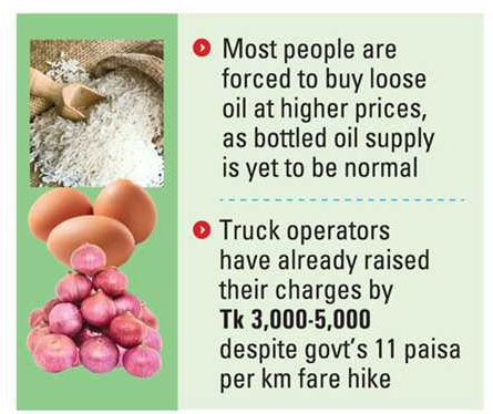 "Although the government increased diesel-based transport fare by only 11 paisa per kilometre, truck operators have already raised their charges by Tk 3,000-5,000 further," said Junawed Ali, a Mohammadpur Agricultural Market-based trader.