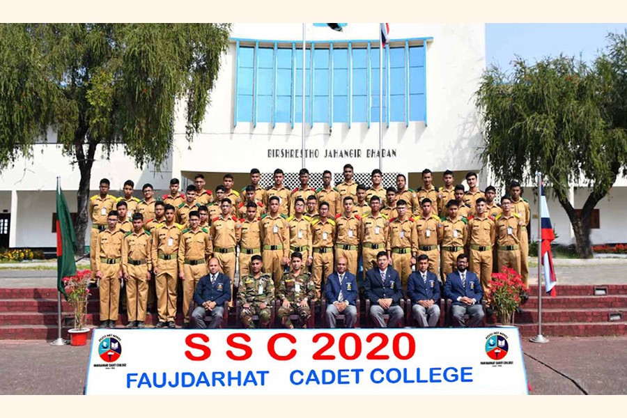 Students of Faujdarhat Cadet College pose for photograph with teachers after scoring the best results in the SSC examination under Chattogram Education Board. All 44 students achieved GPA 5 (A+) — ISPR