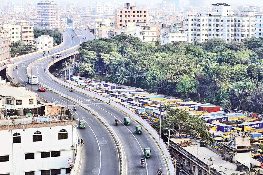 The photo snapped from Tikatuli shows a road wears deserted look on Saturday as vehicles were kept off the streets, during the BNP's last divisional rally on the city's Golapbagh ground. — FE Photo