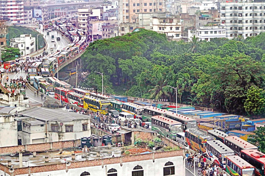 Small entrepreneur Zahirul Alam was headed to the Sadarghat terminal to board a launch to travel to his hometown Barishal. He had been walking from Kakrail to the Sadarghat area since there was no sign of traffic congestion easing as of 5:00 pm.