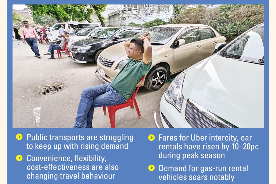 As the Eid-ul-Fitr festival is approaching, the long-route travellers are increasingly opting for private rented car and app-based Uber intercity services. It happens, as public transport systems, including buses and trains, are struggling to keep up with surging demand.