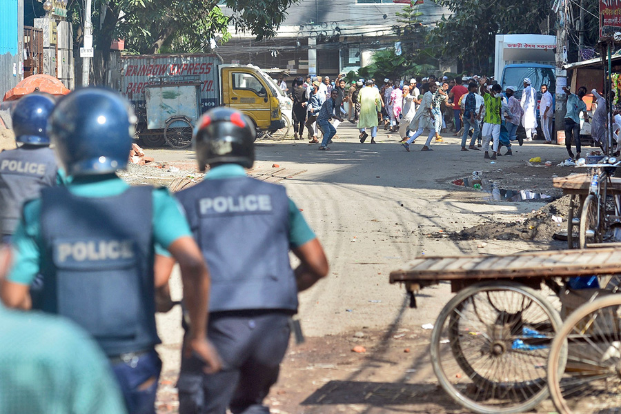 A partial view of the clash between protesters and police during a demonstration after the Jumma prayers near a mosque in the city on Friday — AFP