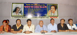 BNP standing committee member MK Anwar speaking at a discussion on \'Feroza Begum, a Name of Legend\' organised by Jatiyatabadi Samajik Sangskritik Sangstha (Jasas) at the National Press Club in the city Wednesday. — Focus Bangla Photo