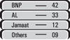 According to unofficial results, the BNP-supported chairman candidates won elections in 42 Upazilas while the Awami League-backed candidates in 33 and the pro-Jamaat ones in 12 Upazilas.