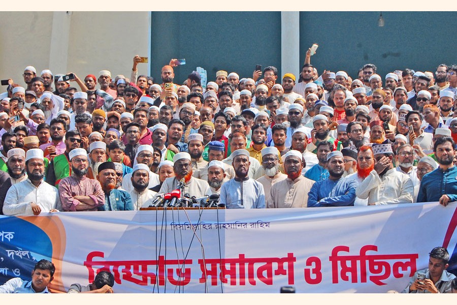 Bangladesh Jamaat-e-Islami Secretary General Mia Golam Parwar addressing a rally alleging widespread electoral fraud and violence perpetrated by the "ruling party men" during the by-elections to the Sherpur-3 and Bogura-6 constituencies held on April 9. Dhaka city north and south units of Jamaat organised the protest rally in front of the north gate of the Baitul Mokarram National Mosque in the city after jumma prayers on Friday. — Focus Bangla