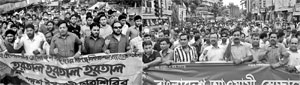 Photo: Islami Chhatra Shibir (left) took out a procession in the port city Thursday