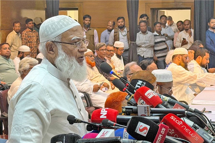 Opposition Leader and Jamaat-e-Islami Ameer Shafiqur Rahman addressing a seminar titled 'Government Against Referendum Verdict: Country at a Crossroads' at the Institution of Diploma Engineers, Bangladesh, in the capital on Monday. —Focus Bangla