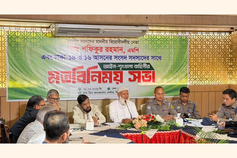 Leader of the Opposition and Jamaat-e-Islami Ameer, Dr Shafiqur Rahman, speaking at a view-exchange meeting with Jamaat's MPs , Barrister Mir Ahmad Bin Qasem of Dhaka-14 and Abdul Baten of Dhaka-16, and the police high-ups deployed in the two constituencies at a city hotel on Thursday. — Focus Bangla