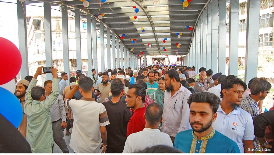 The foot overbridge at New Market in the capital was opened to the public after Road Transport and Shipping Minister Sheikh Rabiul Alam and Dhaka South City Corporation Administrator MD Abdus Salam inaugurated it on Saturday. — Focus Bangla