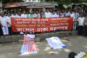 Mr Inu, also JSD president, said: "The silence of the United States proves that they support the Gaza attacks...they haven't stood against the attacks. They were also silent about the terrorist activities unleashed by BNP-Jamaat in Bangladesh."