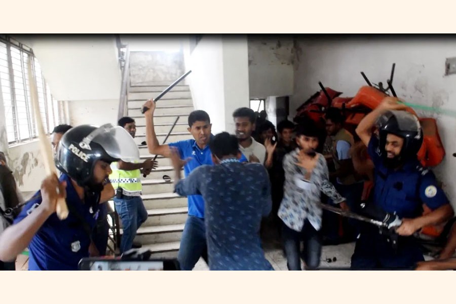 At one stage, they started hurling brick chips at each other and vandalised a police vehicle, SM Tariqul Islam, additional superintendent of Barguna police, said. "Later police had to use batons to bring the situation under control."