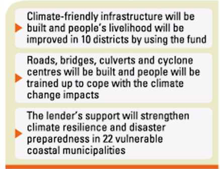 The fund would be used in building climate-adopted infrastructure and socio-economic development of the people in the 10 coastal districts, the sources added.