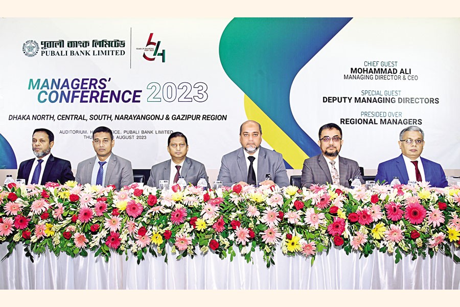 The 2nd Managers' Conference-2023 of Dhaka North, Dhaka Central, Dhaka South, Gazipur and Narayangonj region of Pubali Bank Limited was held at the bank's head office recently. Mohammad Ali, managing director & CEO, attended the conference as chief guest, while Deputy Managing Directors Mohammad Esha, Ahmed Enayet Manzur, Md Shahnewaz Khan and Mohammad Anisuzzaman were also present.