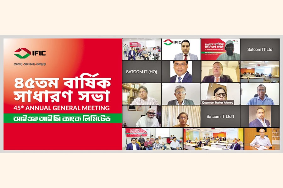 The 45th Annual General Meeting (AGM) of IFIC Bank Limited was held Thursday on digital platform. Presided over by the Chairman of the Board of Directors of the Bank Mr. Salman F Rahman MP, the meeting was attended, among others, by Vice Chairman Mr. Ahmed Shayan Fazlur Rahman, Directors and Managing Director & CEO of the Bank Mr. M Shah Alam Sarwar. The AGM approved the audited financial statements for the year ended on 31 December 2021 and a 5.0 per cent stock dividend for the shareholders.