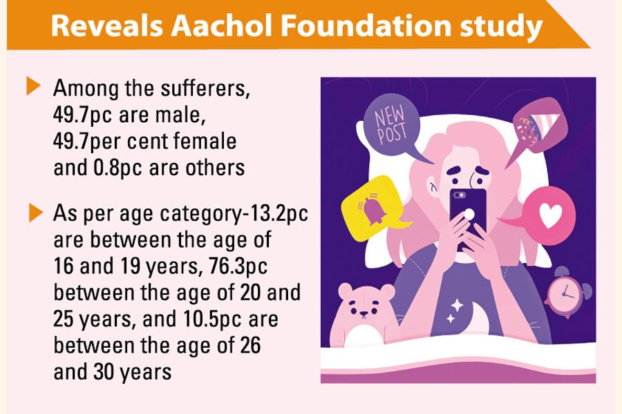 Among 1,773 students, 72.3 per cent have faced some mental problem in their life due to use of internet and 85.9 per cent suffer from mental illness for the same reason, according to a survey conducted by Aachol Foundation.