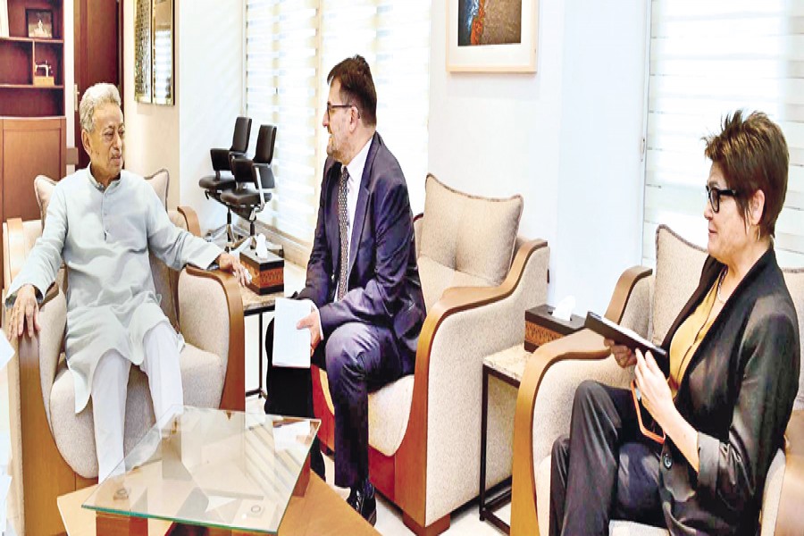 A delegation of the World Bank meets Finance Minister Amir Khosru Mahmud Chowdhury at his ministry on Monday. — PID