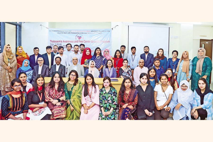 A free thalassemia carrier screening and awareness camp was held at Asian University for Women, Chattogram in association with First Security Islami Bank Ltd and Institute for Developing Science and Health Initiatives (ideSHi). Dr Firdausi Qadri, laureate of Ramon Magsaysay Award 2021 & Independence Award-2023, Syed Waseque Md Ali, managing director of First Security Islami Bank Ltd and officials from Asian University for Women joined the programme.