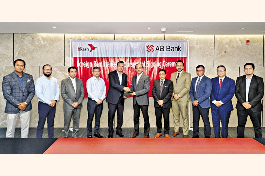 AB Bank and bKash have recently inked a foreign remittance disbursement agreement under which remittance can be sent directly to the beneficiary's bKash wallet through AB Bank. Syed Mizanur Rahman, deputy managing director of AB Bank, and Ali Ahmmed, chief commercial officer of bKash, signed the agreement.