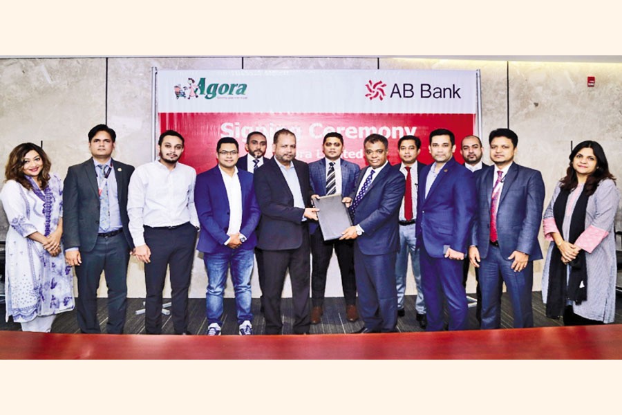 AB Bank Limited signed an agreement with Agora Limited under which ABBL credit cardholders will get 12 per cent cashback on purchases at all Agora outlets. Abdur Rahman, Deputy Managing Director of AB Bank Limited, and Muallem Chowdhury, Acting Director, Agora Limited, signed the agreement on behalf of their respective organisations.
