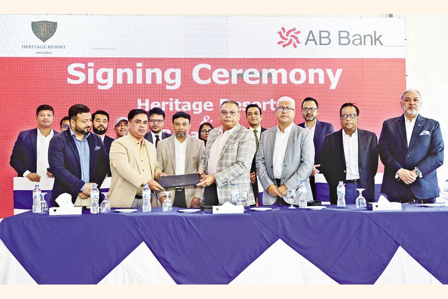 AB Bank and Heritage Resort signed a Memorandum of Understanding (MoU) under which AB Bank cardholders will enjoy special discounts (up to 30% discount on weekend and up to 40% discount on weekdays) on room rent at the Resort. Tarique Afzal, Managing Director & CEO of the bank, and Menhazur Rahman Bhuiyan, Managing Director of the Resort, signed the agreement. Shafiqul Alam, Independent Director, AB Bank, and Md. Fazlur Rahman, Director, AB Bank, were present at the signing ceremony held at the Heritage Resort in Madhabdi, Narsingdi.