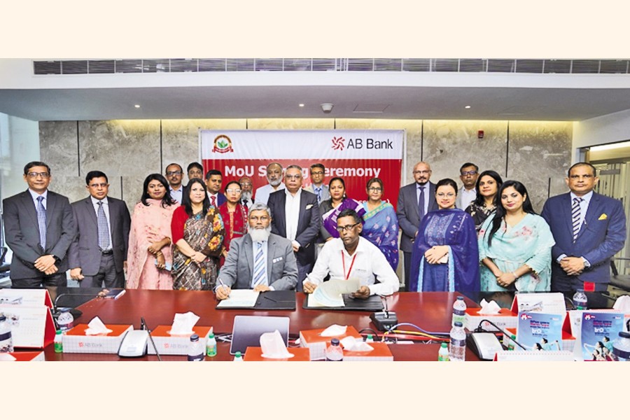 AB Bank Limited and Trinamul Nari Uddyakta Society (Grassroots) have signed an agreement whereby AB Bank will provide training and financing facility for women entrepreneurs. Iftekhar Enam Awal, Head of Corporate & SME of AB Bank, and Himangshu Mitra, CEO of Trinamul Nari Uddyakta Society (Grassroots), signed the agreement on Tuesday in presence of President & Managing Director of AB Bank Tarique Afzal.