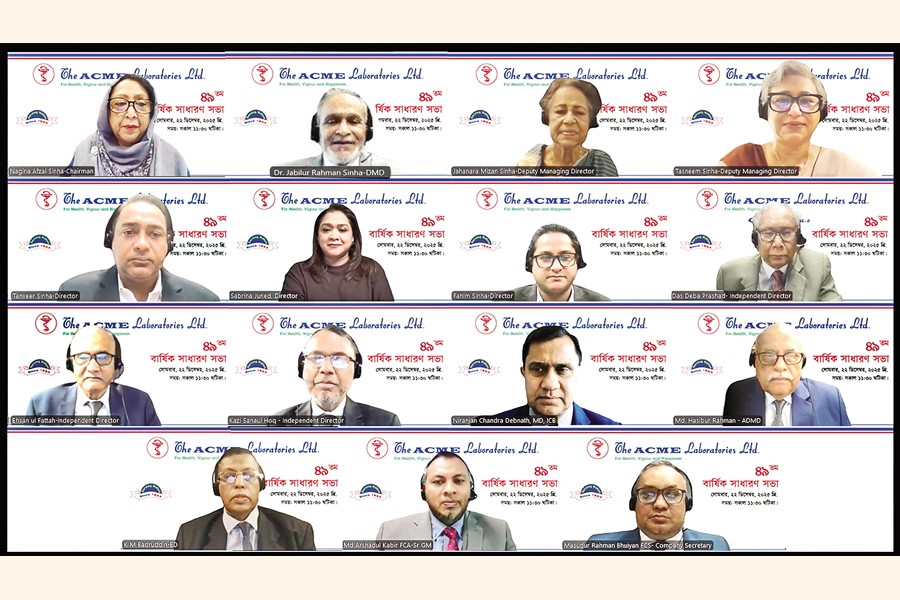 The 49th Annual General Meeting (AGM) of The ACME Laboratories Ltd was held virtually on Monday, where the shareholders approved a 35% cash dividend for the financial year 2024-25. Nagina Afzal Sinha, Chairman of the company, presided over the meeting. Deputy Managing Directors Dr Jabilur Rahman Sinha, Jahanara Mizan Sinha, and Tasneem Sinha, Directors Tanveer Sinha, Sabrina Juned, Fahim Sinha, Independent Director as well as Chairman of the Audit Committee and Nomination and Remuneration Committee (NRC) Das Deba Prashad, Independent Directors Ehsan Ul Fattah and Kazi Sanaul Hoq, Nominee Director Niranjan Chandra Debnath, and Company Secretary Masudur Rahman Bhuiyan were also present.