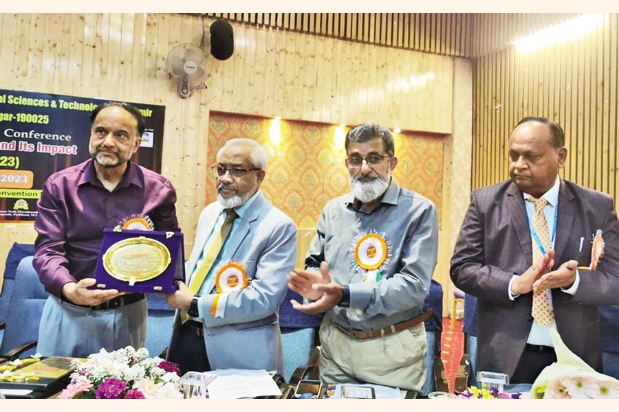 Agricultural and Engineering Technology Development Society, Kashmir, honoured Sher-e-Bangla Agricultural University Vice Chancellor Prof Dr Md Shahidur Rashid Bhuiyan with Life Time Achievement Award-2023 in Plant Breeding at the 5th International Conference on Climate Change and its Impact (CCI- 2023) held in Sher-e-Kashmir University of Agricultural Sciences and Technology of Kashmir, Sreenagar in India recently
