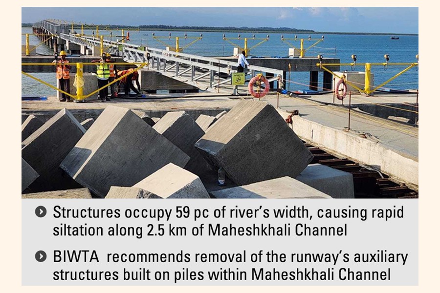 In this context, BIWTA has recommended the removal of the runway's auxiliary structures built on piles within the Maheshkhali Channel. In a letter signed by BIWTA Chairman Commodore Arif Ahmed Mostafa and sent to the Ministry of Shipping, the authorities highlighted the urgent need to address the issue.