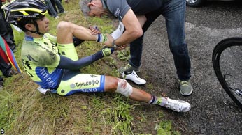 Alberto Contador says he has been told it is ‘almost impossible’ for him to compete in the Vuelta a Espana after breaking a leg on the Tour de France. The Spaniard, one of the pre-race favorites for Le Tour, withdrew on Stage 10 following a big crash. Contador, 31, said he did not need surgery on his right leg but added doctors had virtually ruled him out of the Vuelta, an event he has won twice. The Vuelta is due to start in Jerez de la Frontera on 23 August. ‘The doctor told me that surgery would increase the trauma the knee has suffered and will increase the delay in recovery,’ added Contador. ‘The good news is I have not damaged tendons or ligaments,’ according to BBC.
