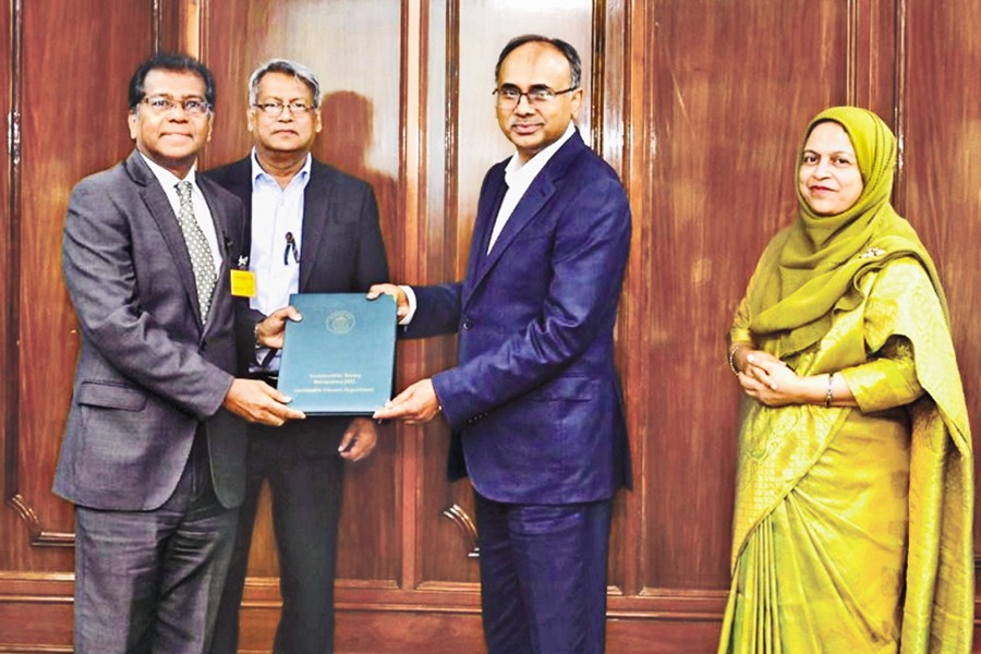 Alliance Finance PLC (formerly Lankan Alliance Finance Ltd) has achieved Bangladesh Bank's Sustainability Rating for 2022. Kanti Kumar Saha, Chief Executive Officer of Alliance Finance PLC, received the appreciation letter from Abdur Rouf Talukdar, Governor of Bangladesh Bank, at the head office of Bangladesh Bank recently.