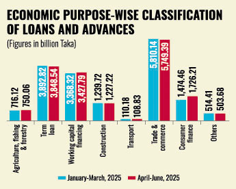 According to the latest Bangladesh Bank (BB) data, the amount of consumer loans during the April-June period of the fiscal year (FY) 2024-25 rose by Tk 250 billion.