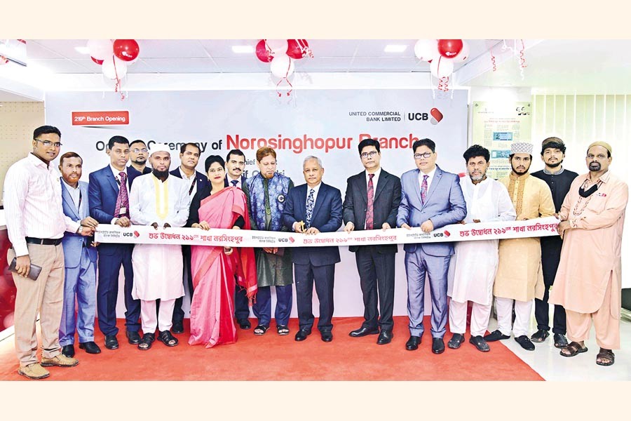 Arif Quadri, Managing Director & CEO, United Commercial Bank Limited, inaugurating its 219th branch at Norosinghopur, Ashulia, Dhaka on Monday as the chief guest.