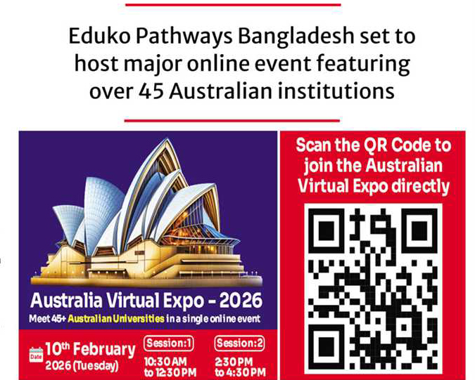 Eduko Pathways Bangladesh is going to organise the Australia Virtual Education Expo 2026 on February 10, 2026 (Tuesday) providing Bangladeshi students with unprecedented access to representatives from more than 45 Australian universities through a comprehensive virtual platform.