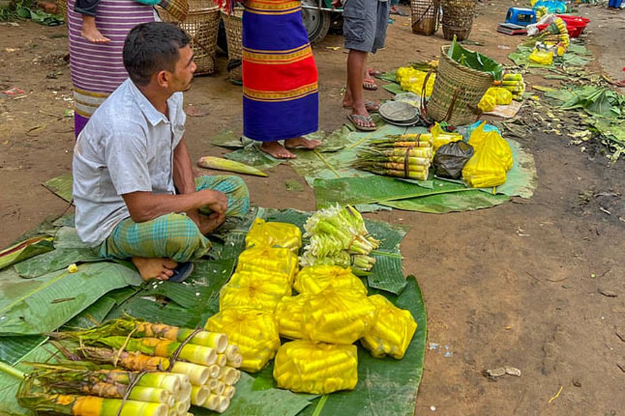 A trader selling bamboo shoots at a kitchen market in Khagrachhari district — bdnews24.com