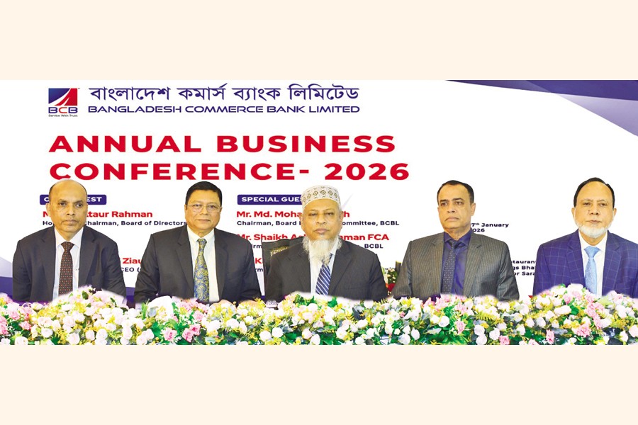 The Annual Business Conference-2026 of Bangladesh Commerce Bank Limited (BCBL) was held in Dhaka recently. Md Ataur Rahman, Chairman of the Board of Directors, was present as the chief guest while Md Mohasin Miah, Chairman of the Board Executive Committee, and Shaikh Ashafuzzaman, Chairman of the Board Audit Committee, were present as special guests. Mohammad Ziaul Karim, Managing Director and CEO (CC), presided over the event. Deputy Managing Director Md Zahirul Alam was also present.