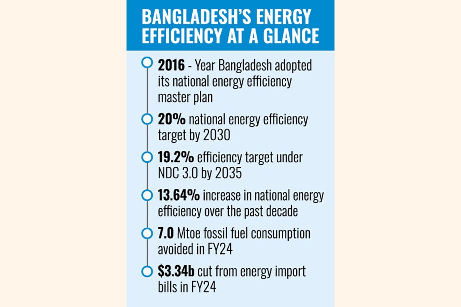 The study recalled that Bangladesh devised a national energy efficiency master plan in 2016, driven by energy security concerns and rising import bills. Nine years on, those efforts are delivering tangible results, it said.