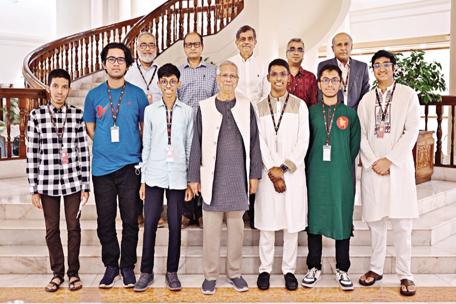Six extraordinary young Bangladeshis met with Chief Adviser Professor Muhammad Yunus at the State Guest House Jamuna recently, their bronze medals representing Bangladesh's growing prowess on the world's most prestigious academic stages.