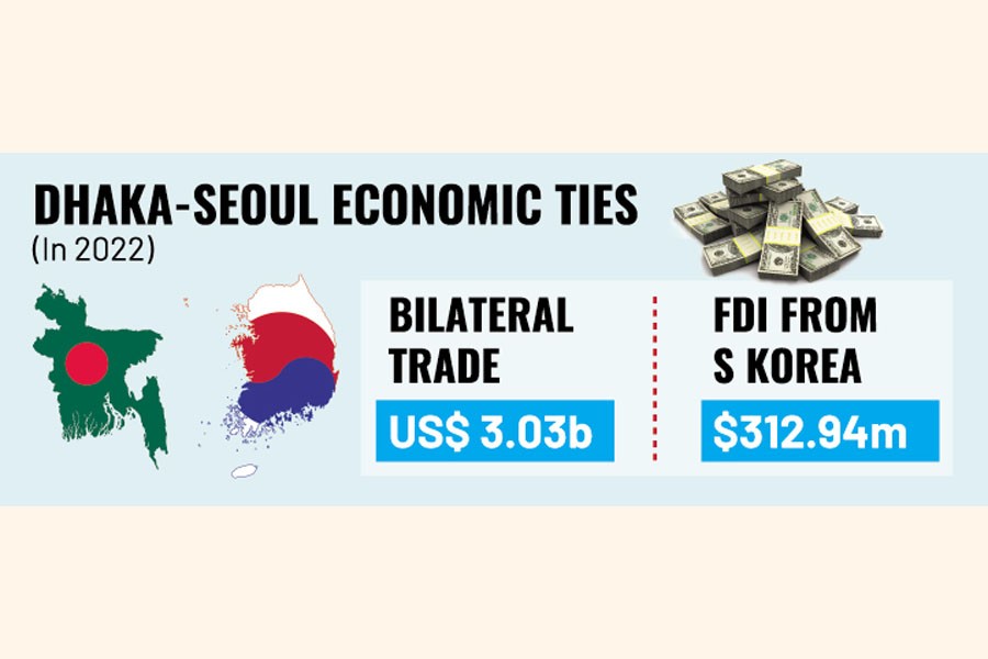 "Firstly, two-way trade surpassed $3 billion last year. Secondly, Korea's investment in Bangladesh is the fifth largest in terms of accumulated amount," he added.