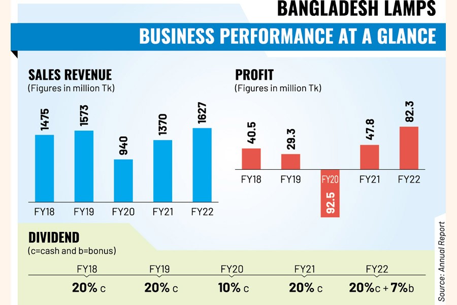 Bangladesh Lamps, an enterprise of Transcom Group, posted a 72 per cent year-on-year growth in profit for FY22, riding on higher sales in LED (light emitting diode) segments and optimisation of operating costs.