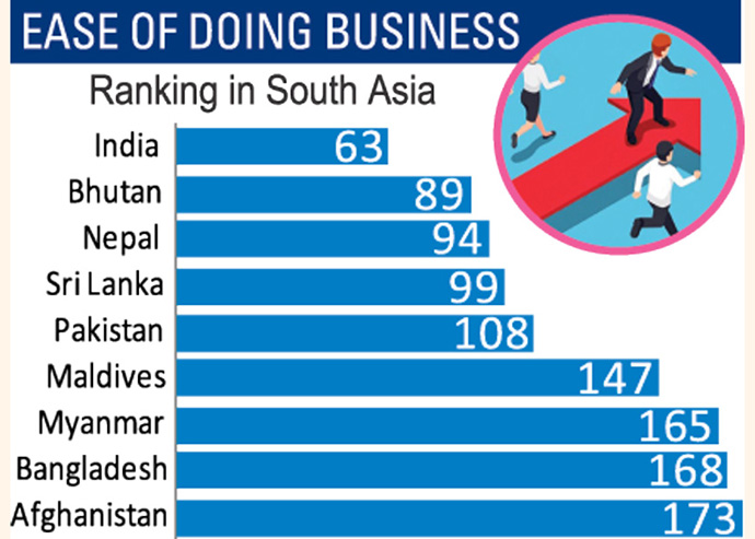 Bangladesh made some reforms in the past one year to April 2019 that, many believe, helped improve its ranking to 168th from 176th out of 190 nations.
