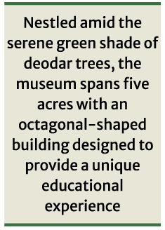 Nestled amid the serene green shade of deodar trees opposite the Bangladesh Atomic Research Institute, the museum spans five acres with an octagonal-shaped building designed to provide a unique educational experience.