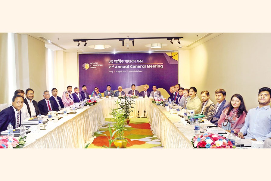 Bengal Commercial Bank held its second annual general meeting (AGM) on Sunday at a hotel in the capital. Md Jasim Uddin, chairman of the bank and president of FBCCI, presided over the meeting. Vice chairmen of the bank Mahbubul Alam and Ghulam Mohammed Alomgir and Managing Director and CEO Tarik Morshed joined the event, among others