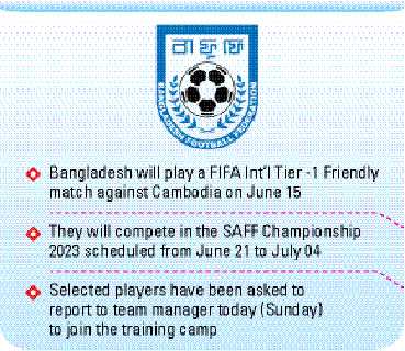 Bangladesh will play a FIFA International Tier -1 Friendly match against Cambodia on June 15 in the Southeast Asian country and will compete in the 14th edition of the SAFF Championship 2023 scheduled from June 21 to July 04 at the Sree Kanteerava Stadium in the Indian city of Bengaluru.