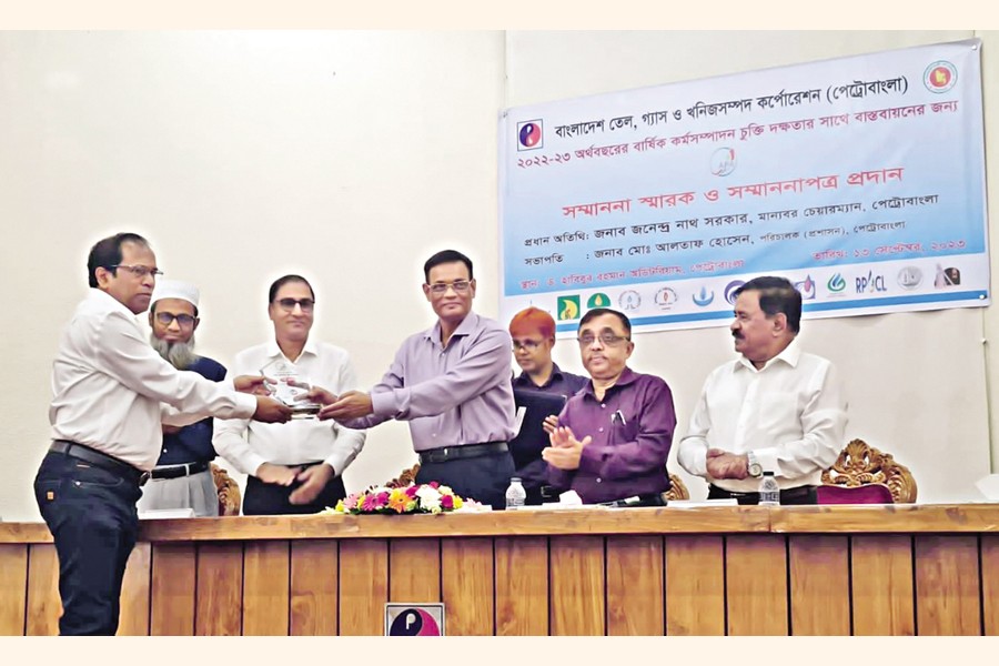 Bakhrabad Gas Distribution Company Limited (BGDCL) along with Petrobangla secured the first position jointly in implementing the Annual Performance Agreement (APA) for financial year 2022-23 among all the subsidiaries of Petrobangla. Petrobangla Chairman Zanendra Nath Sarker handed over a crest to BGDCL Managing Director Shankar Mazumder at a function recently.