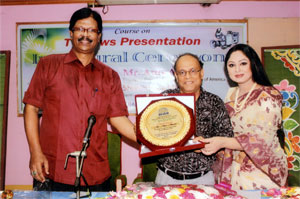 BIJEM Executive Director Mirza Tarequl Qader handed over a crest to Mr Anis for his outstanding contribution to broadcast journalism.