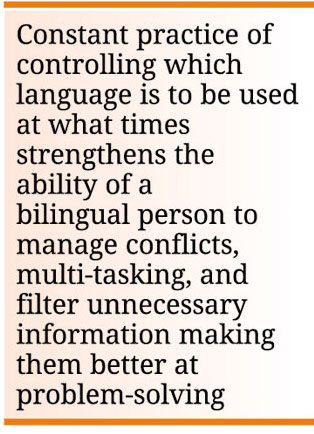 The celebrated psycholinguist, Frank Smith has said it best, "One language sets you in a corridor for life. Two languages open every door along the way." From as early as infancy, bilingual children exhibit divergence from their monolingual peers. The bilingual brain performs better in terms of both cognitive and sensory processing. Infants exposed to a bilingual environment have been proven to possess an enhanced attention span. They are also better at conflict management and have.