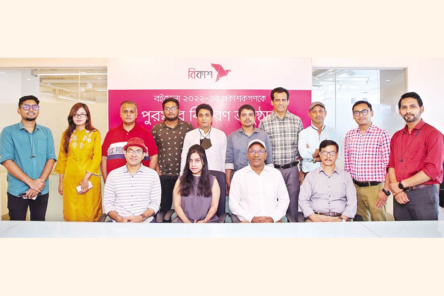 Prizes were handed over to the publishers recently at the bKash head office in the city. Anyaprokash publisher Mazharul Islam, BaatiGhar publisher Dipankar Das, Rumana Sharmin of the Pop Up Factory; Head of Distribution & Retail Business Mohammad Irfanul Huq, and General Manager Sirajul Mowla of bKash and other publishers were present at the event.
